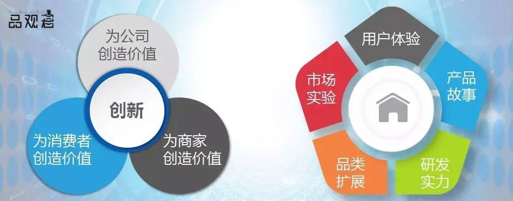 那么怎么能创造价值呢?创新是为三者创造价值,即公司、消费者和商家。而创造价值则可以围绕着5个部分,分别是用户体验、市场实验、产品故事、研发实力和品类拓展。